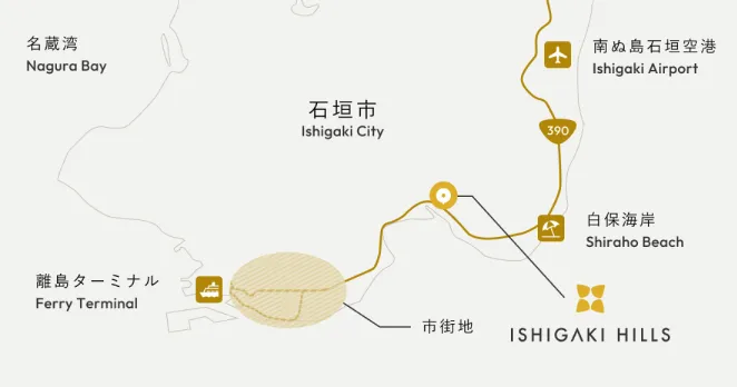 また空港から車で約15分、市街地や離島ターミナルまでも約15分なので、移動やお出かけにも便利な好立地となっています。